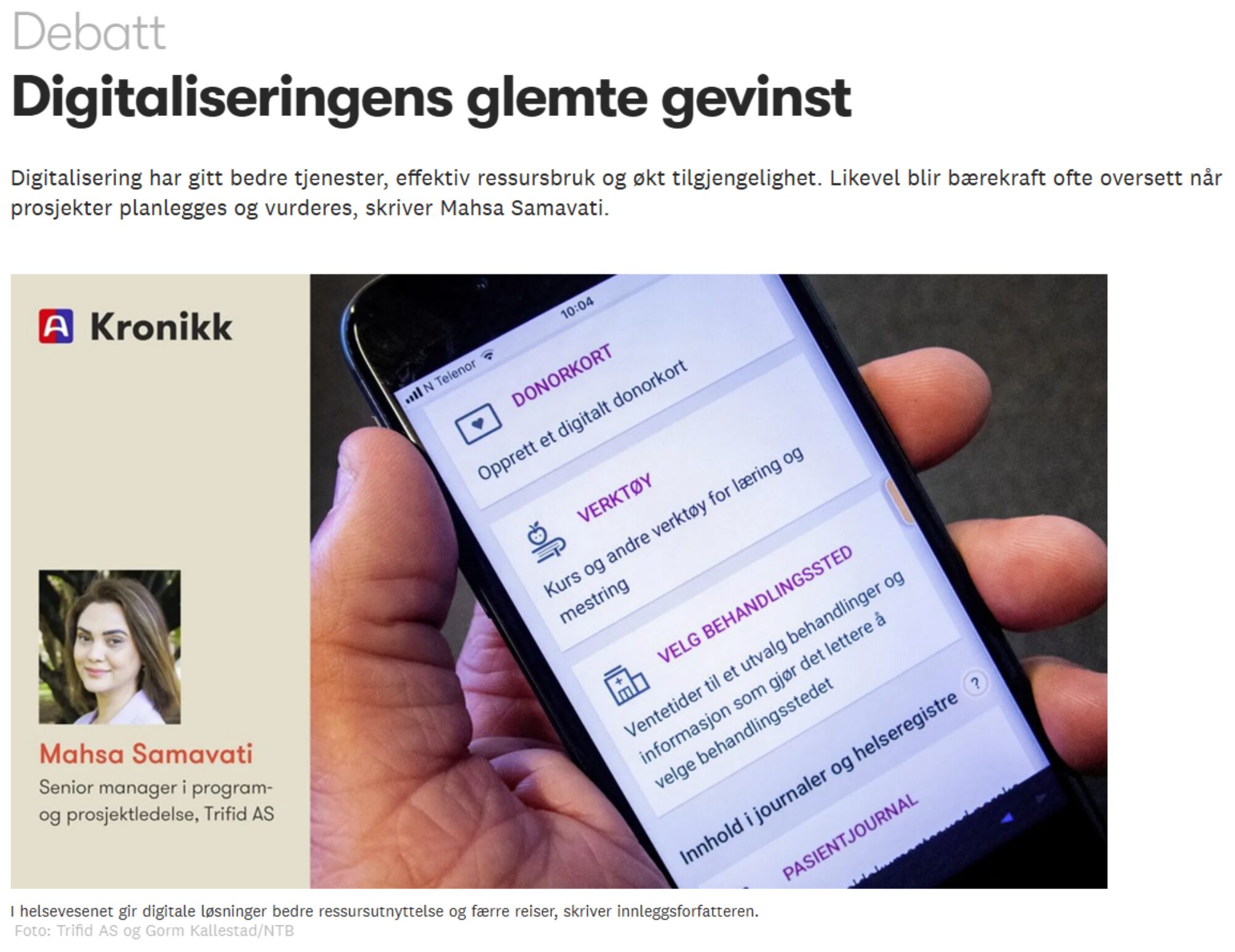 I en kronikk i Altinget skriver Mahsa om hvorfor bærekraft må være en integrert del av digitaliseringsprosjekter fra begynnelsen, heller enn et tillegg som vurderes i etterkant.