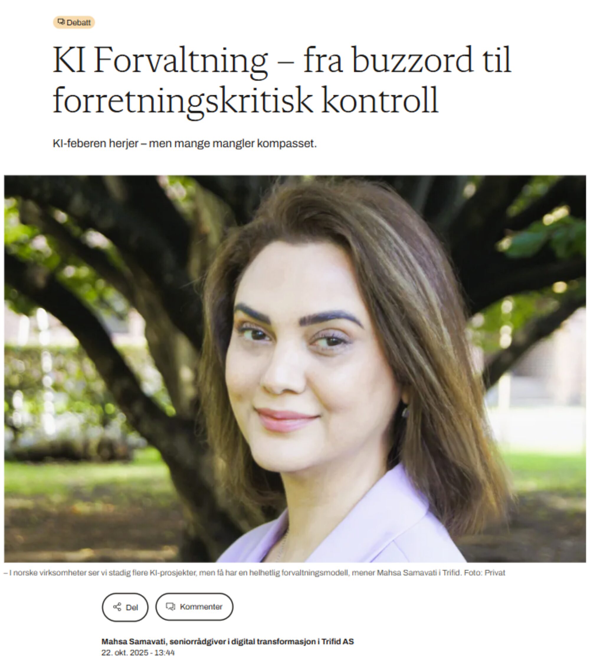 Trifids rådgiver Mahsa Samavati har skrevet et debattinnlegg i Digi om hvorfor styring og forvaltning er avgjørende for at KI skal skape verdi: